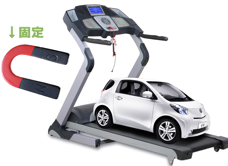 磁石つけた車を前に走らせる