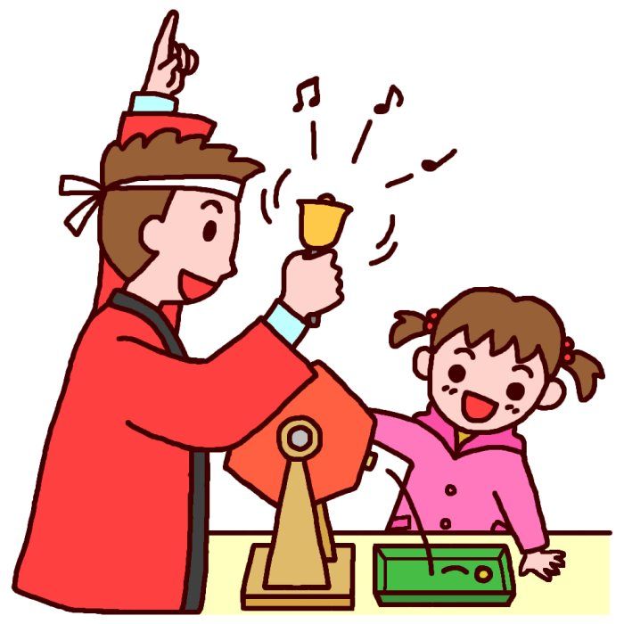 10:00 開店。店の前の通路に立って「いらっしゃいませ」の声かけとお辞儀