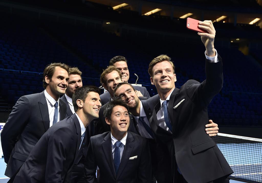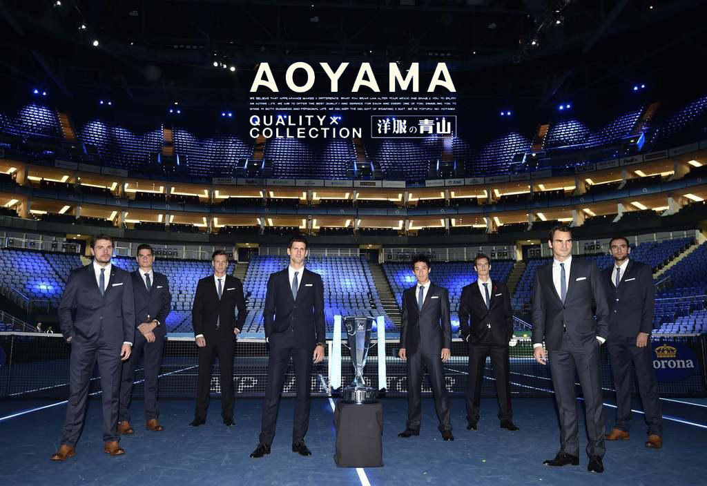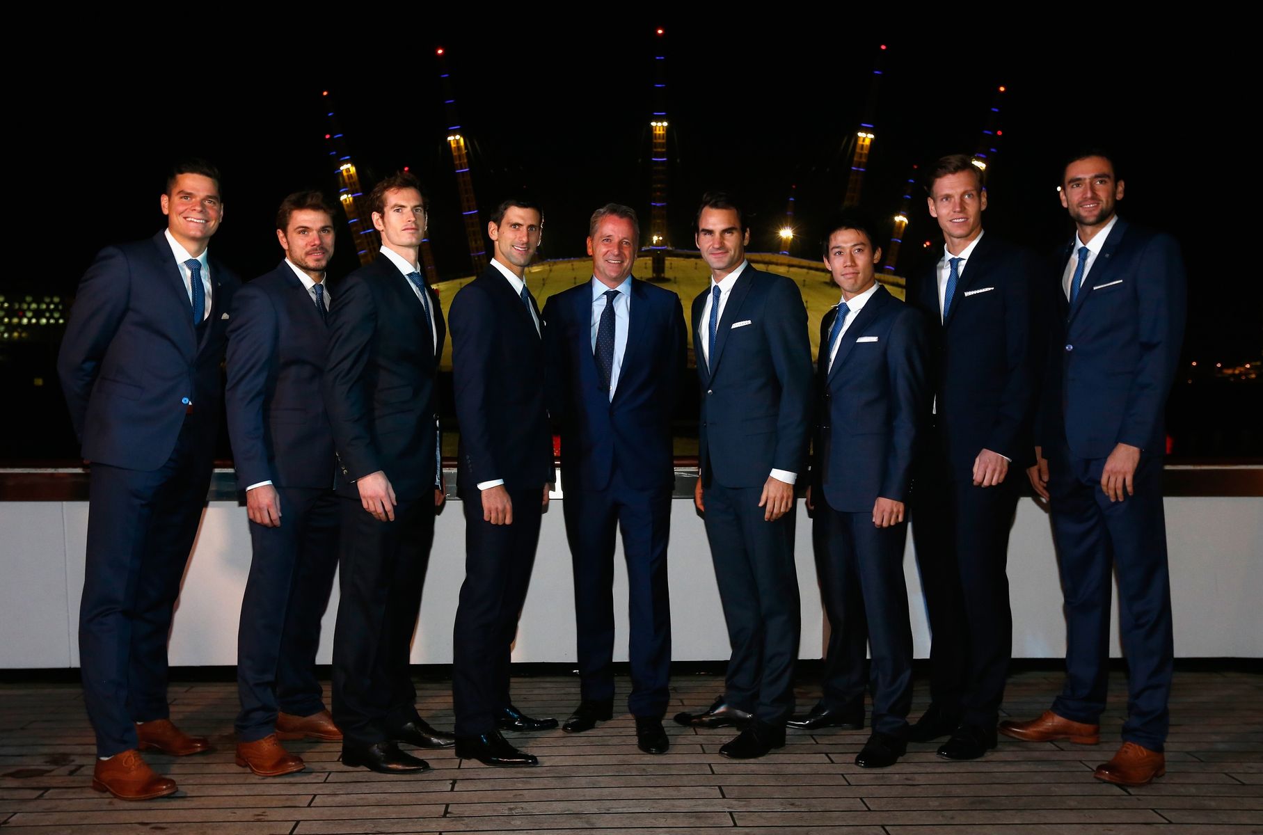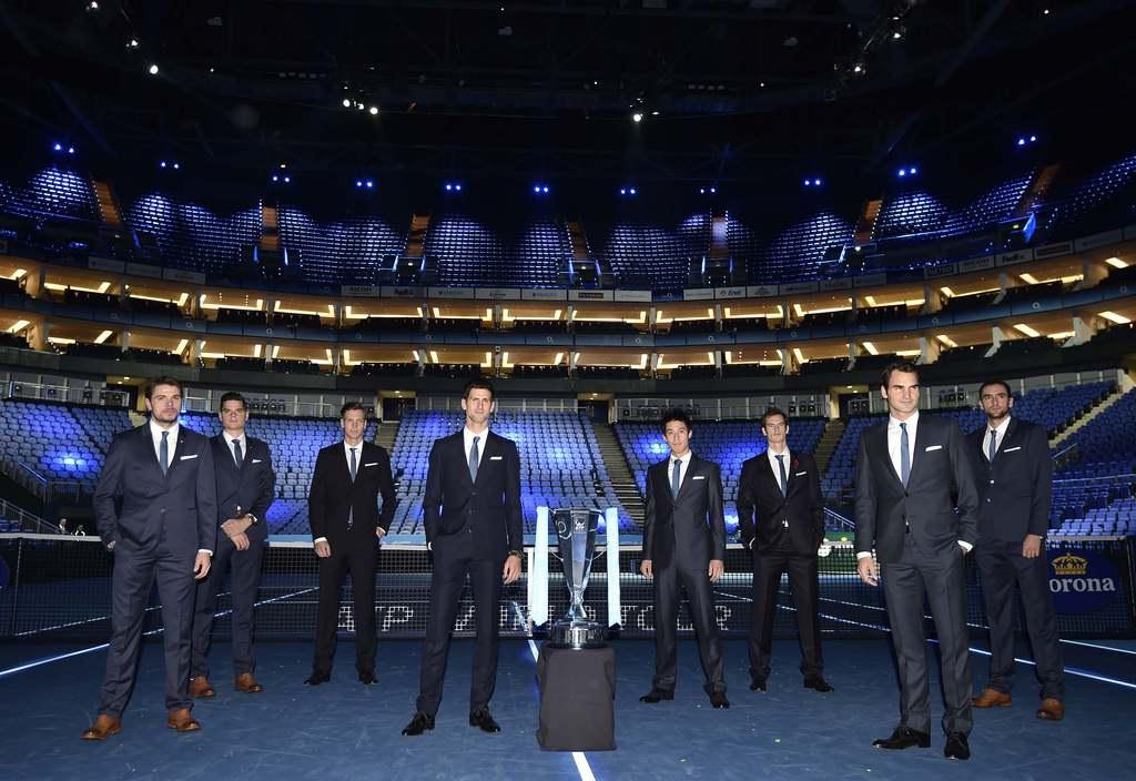 【男子テニスATPツアー・ファイナル】 スーツ姿で8選手によるセンターコートでの写真撮影に