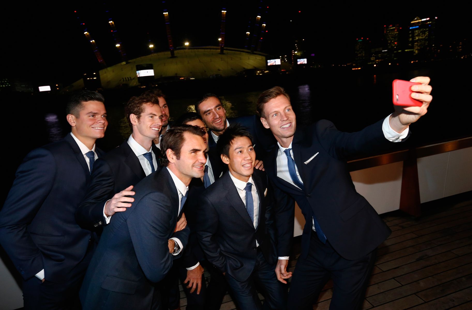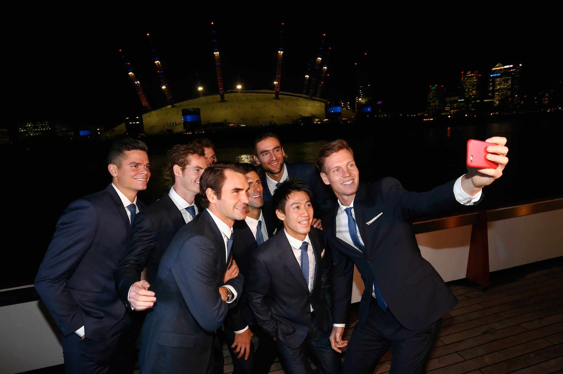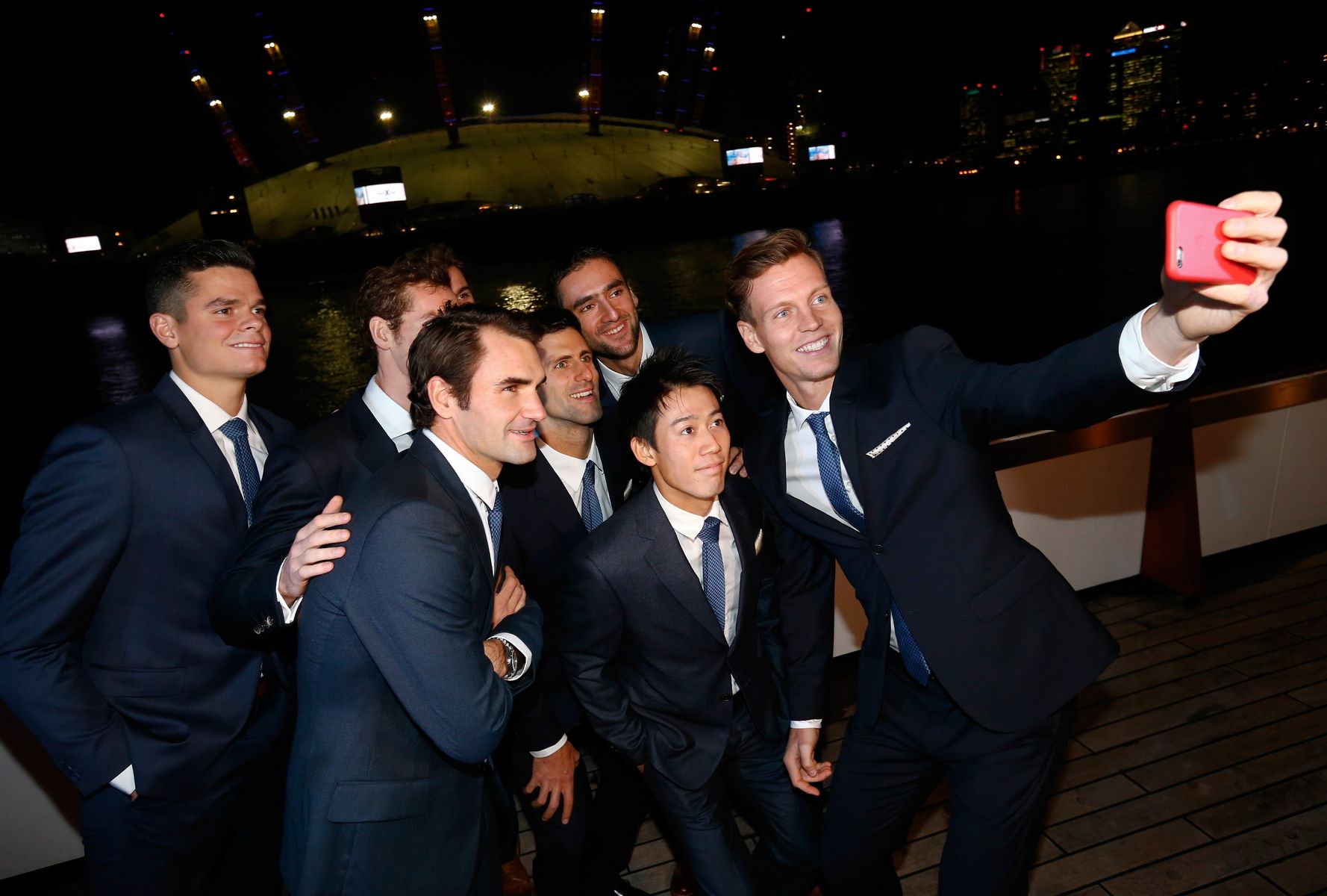 【男子テニスATPツアー・ファイナル】 スーツ姿で8選手によるセンターコートでの写真撮影に