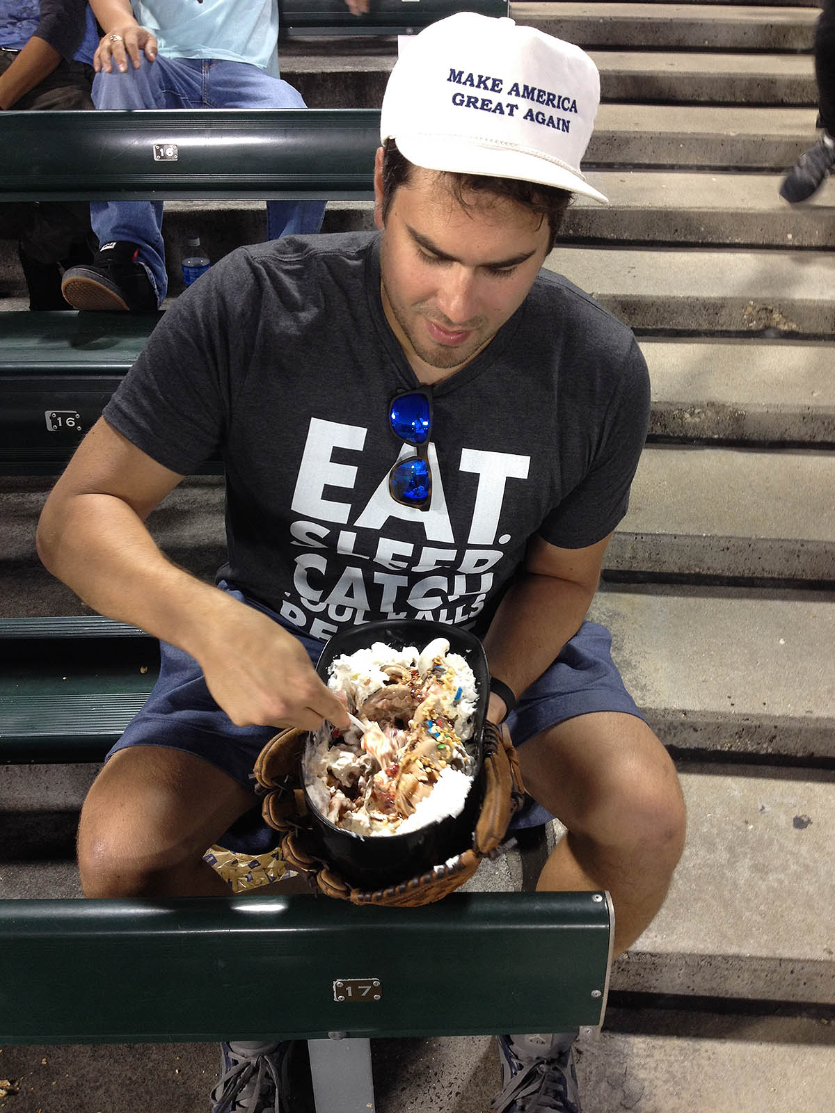 向こうの球場で食べたハンバーガーもでかくてうまかったなあ