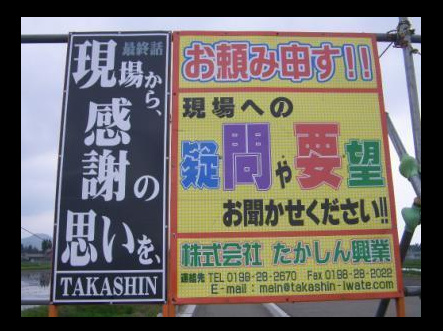 岩手か花巻の道路交通課だか工事業者だかわからんけど看板で遊ぶなw