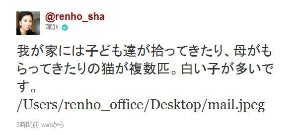 蓮舫・れんほう@民進党@renho_sha 我が家には猫もいます。
