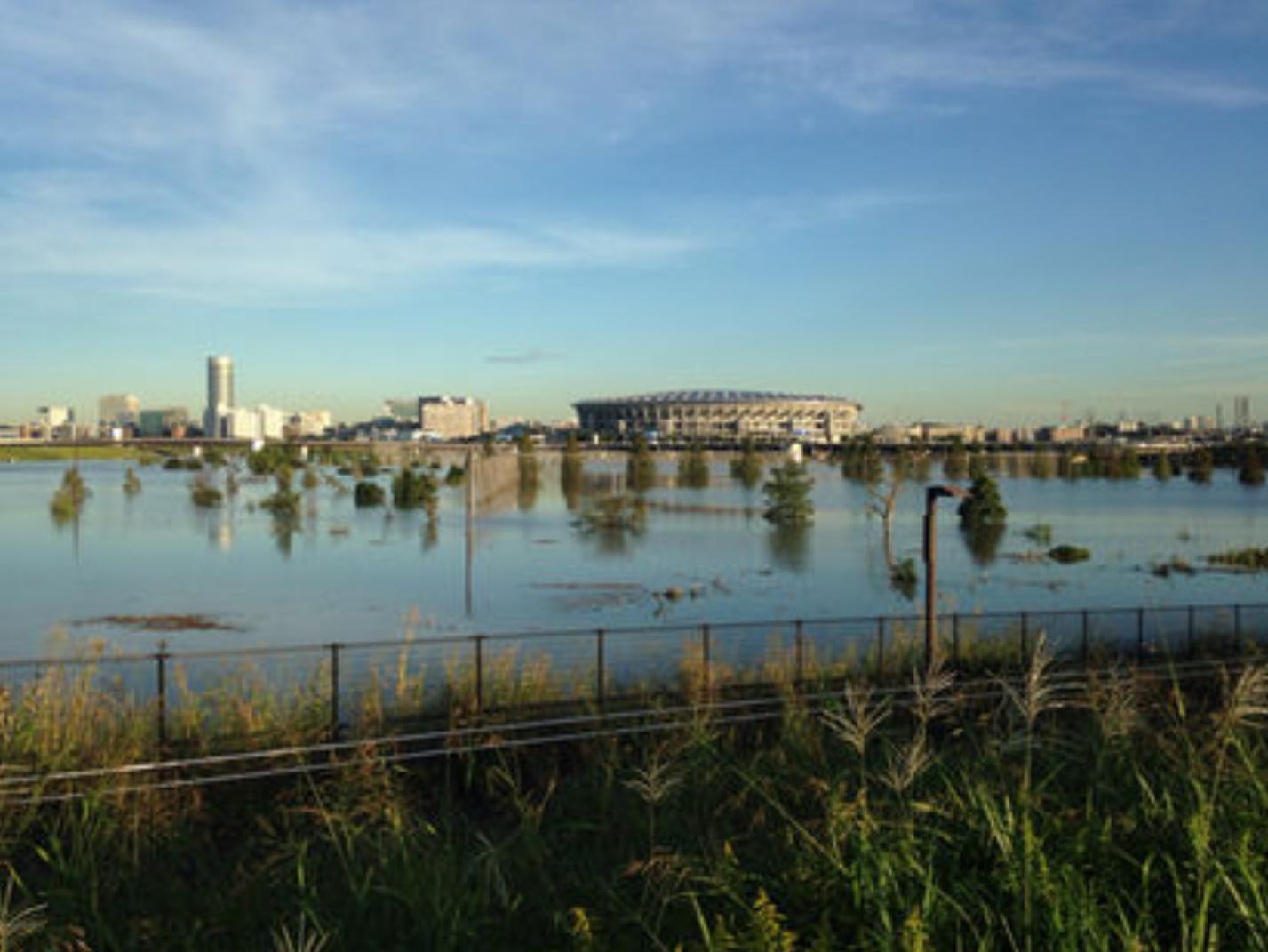 鶴見川多目的遊水地の治水能力にはまだ余裕があったため、スタジアムの地下スペースを治水に投入することなく温存していたのだ。