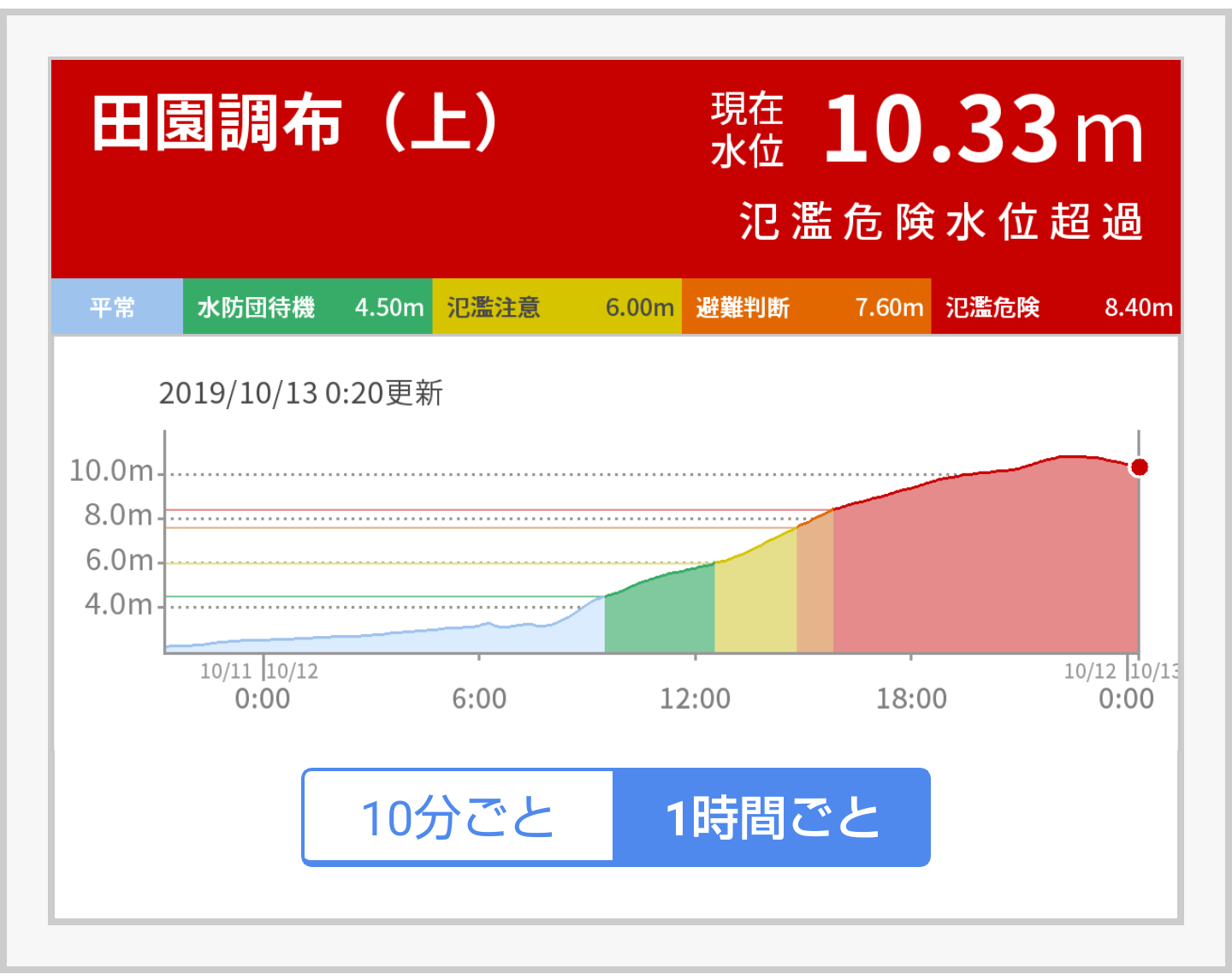 翌13日0時過ぎには平常水位に戻った。
