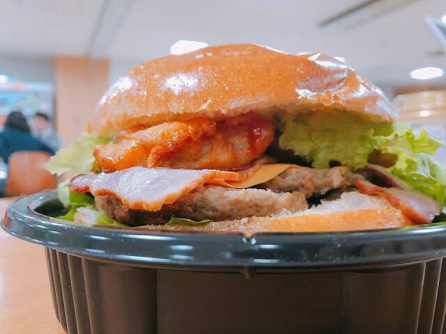 これはデカいハンバーガー丸々入ってる上にチキンタツタも入ってるで