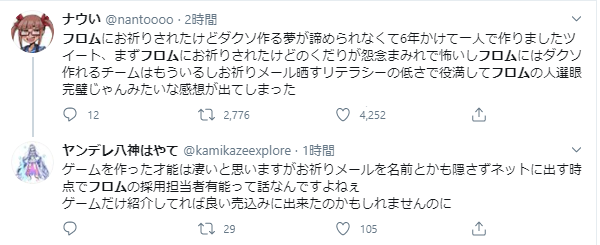あいつは晒されてもしゃーないことをしたけどフロムは普通に落としただけやん