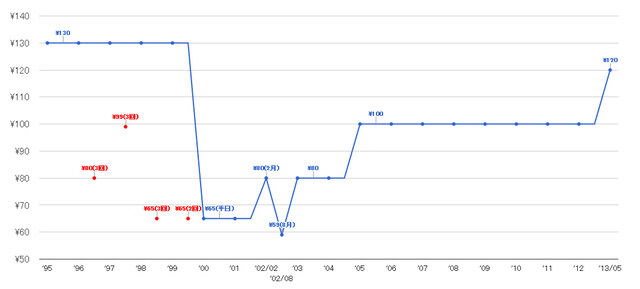 1992年くらいが100円だっけ