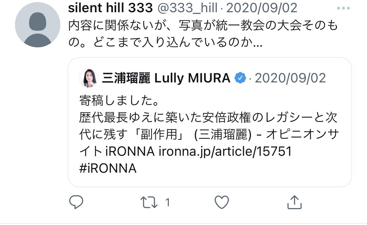 統一教会に言及するツイリプしてるからガチくさいな