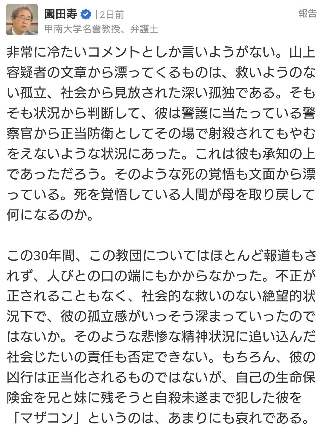 統一教会の悪行を知ってほしかったっていう本人の動機を何一つ崩せてない非常に自己都合的な意見