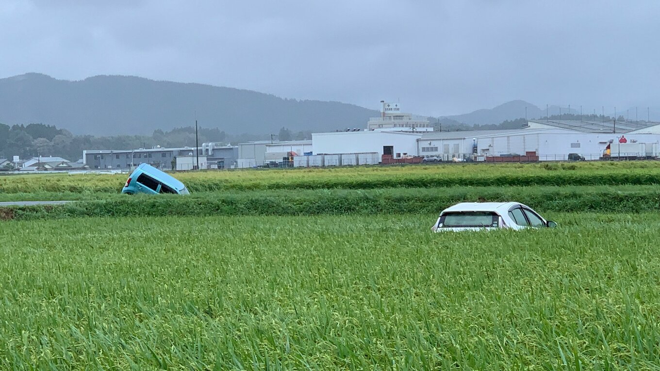 熊本、猛烈な雨で車水没 2人死亡