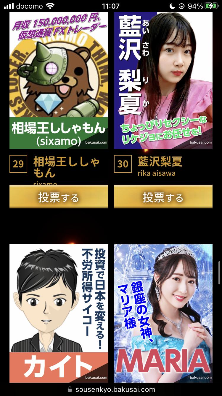 ちなワイはもっくんに投票した