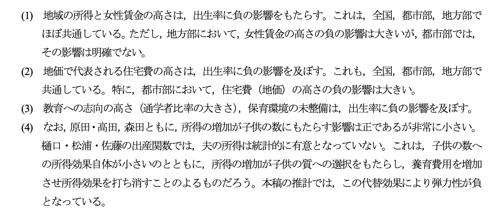 ・所得を上げても子供の質を高めて出費も増えるので数は増えない