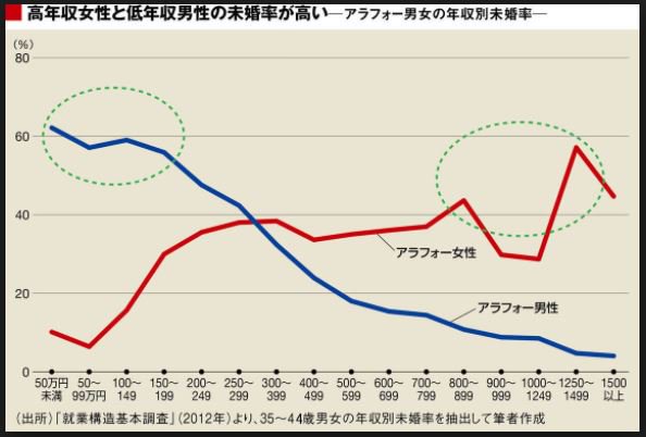 女さんが社会進出して男に養ってもらう以外の選択肢ができたことが非婚化の一番の原因やと思う