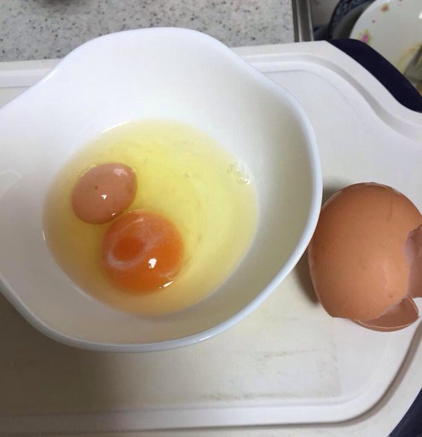 なんざますの?これ。黄身だけが二個ではないのね、殻ごとなのね。