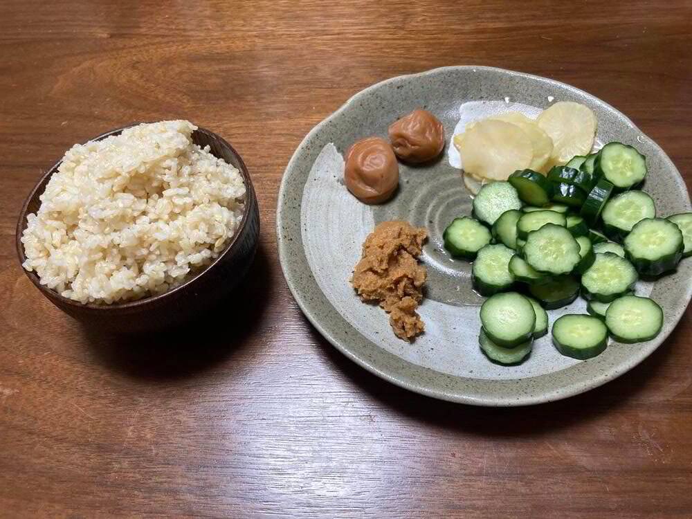 おかずは塩の塊みたいにしょっぱい梅干しと漬け物だけ