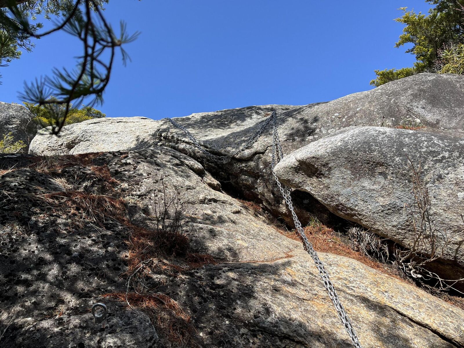 ホールドはあまり無いが花崗岩でザラザラしてるのでそこに指先を押し付けて靴底のフリクションを効かせてやや強引に登った