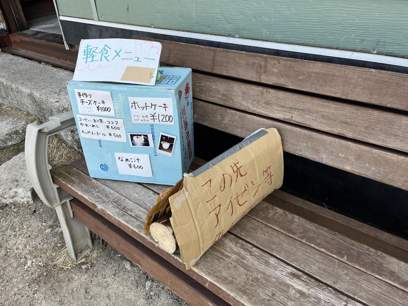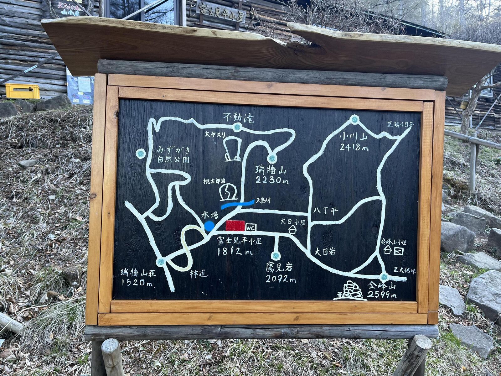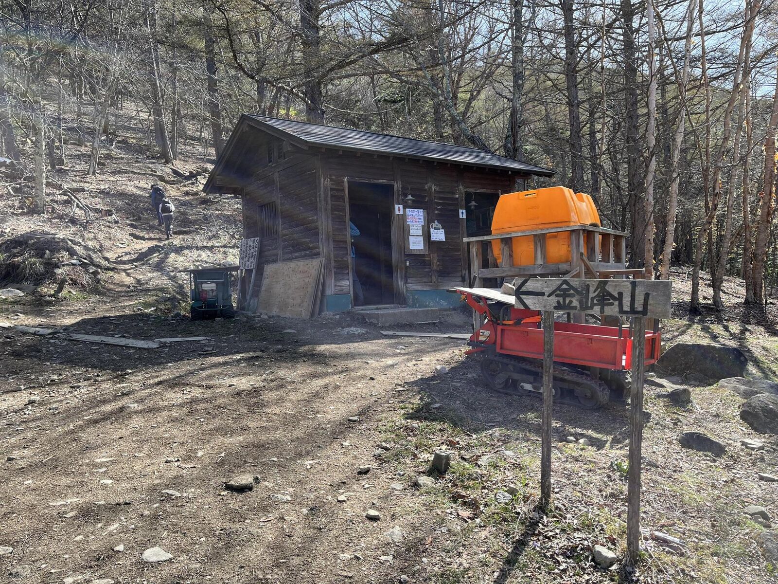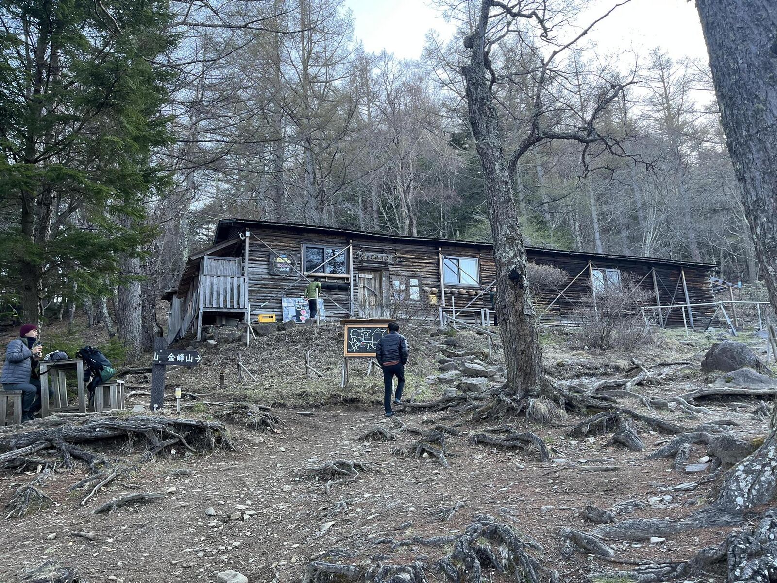 金峰山小屋のベンチで休憩