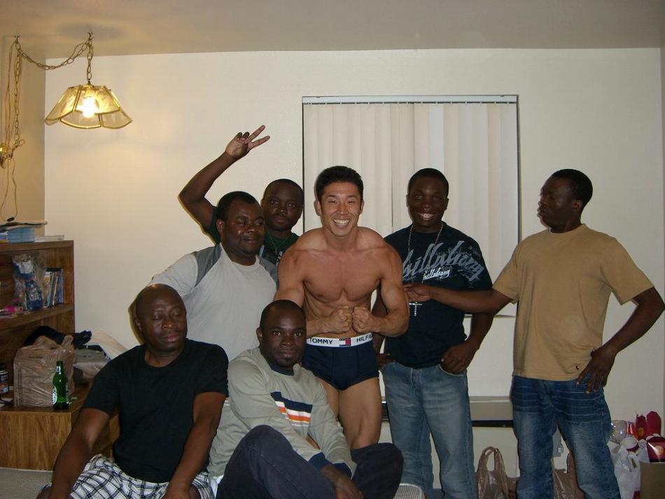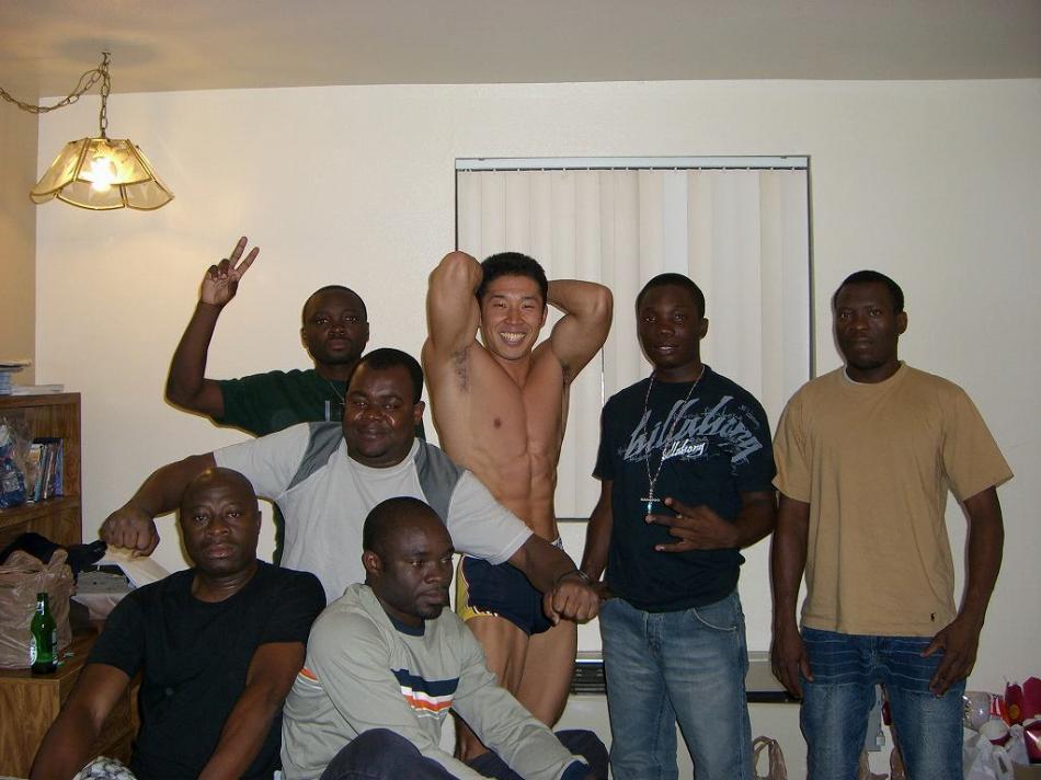写真の中に一人顔がものすごく歪んでる人がいる