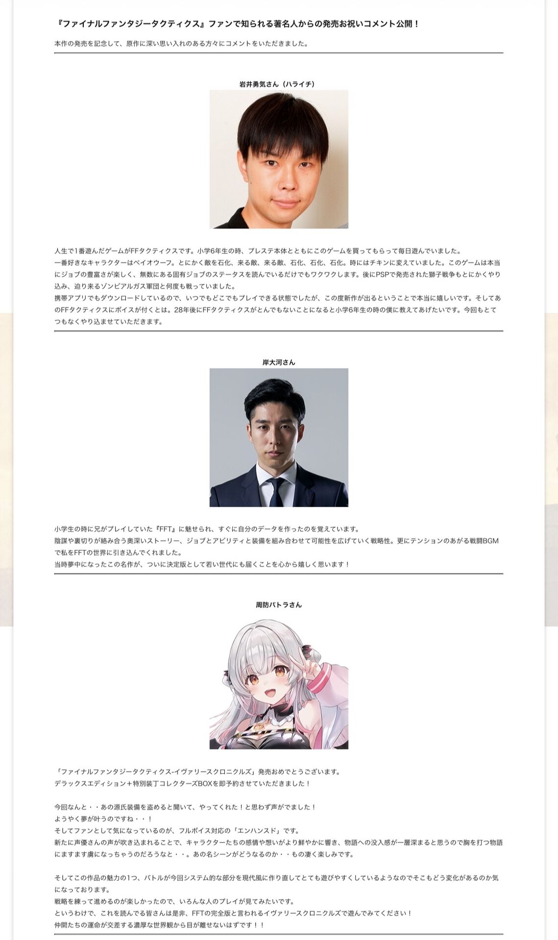 ラムザはマジでミスキャスト、中性的なキャラ付けなのになんであんな声にしたんだ