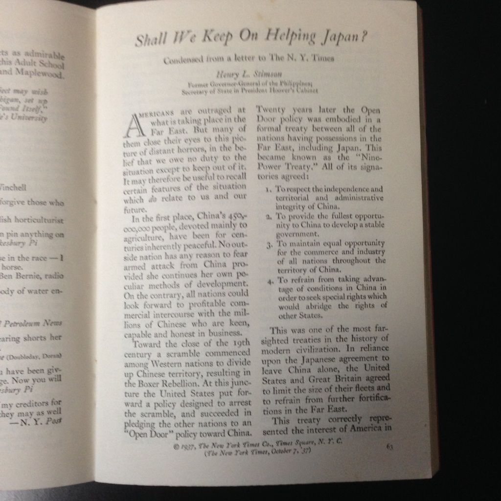 全体として、ルーズベルトの隔離演説を受け、モンロー主義から方針転換、すなわちアジアへの介入を支持する記事となっている。