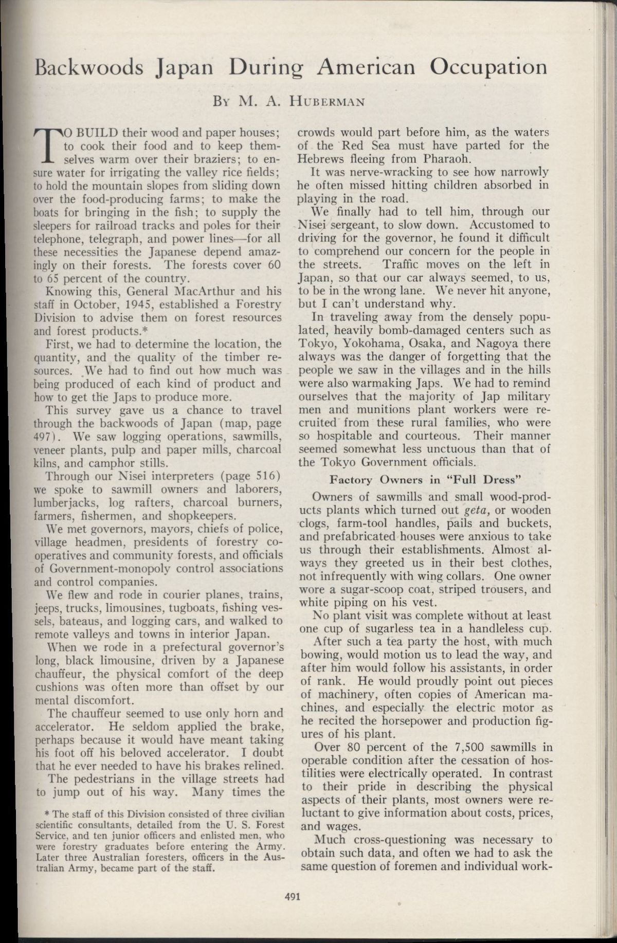 朝鮮戦争以前のアメリカの方針では日本を農業国として再生させる予定で、林業もその一環だった。