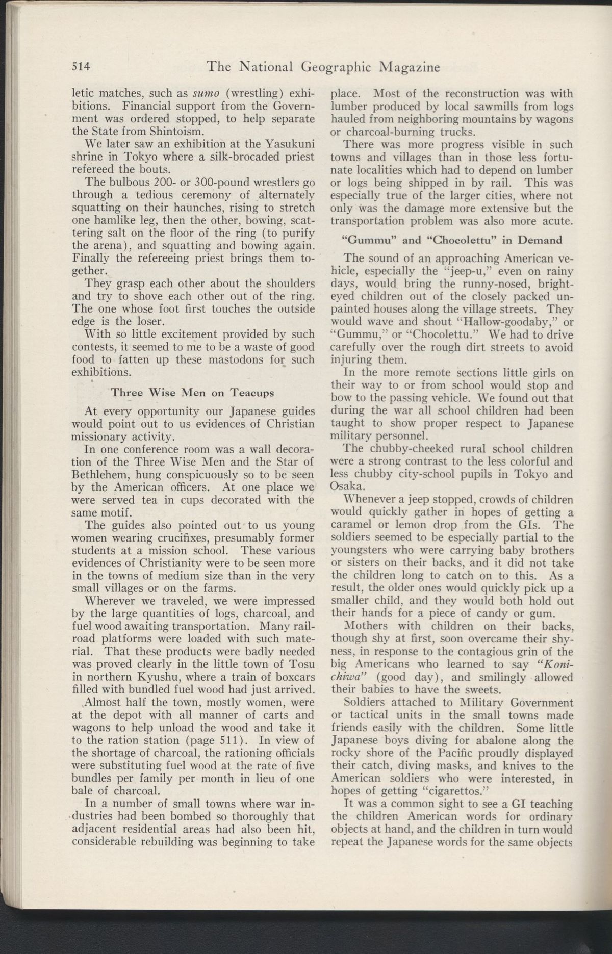 この号の目玉は戦後のアメリカ占領下の日本特集。
