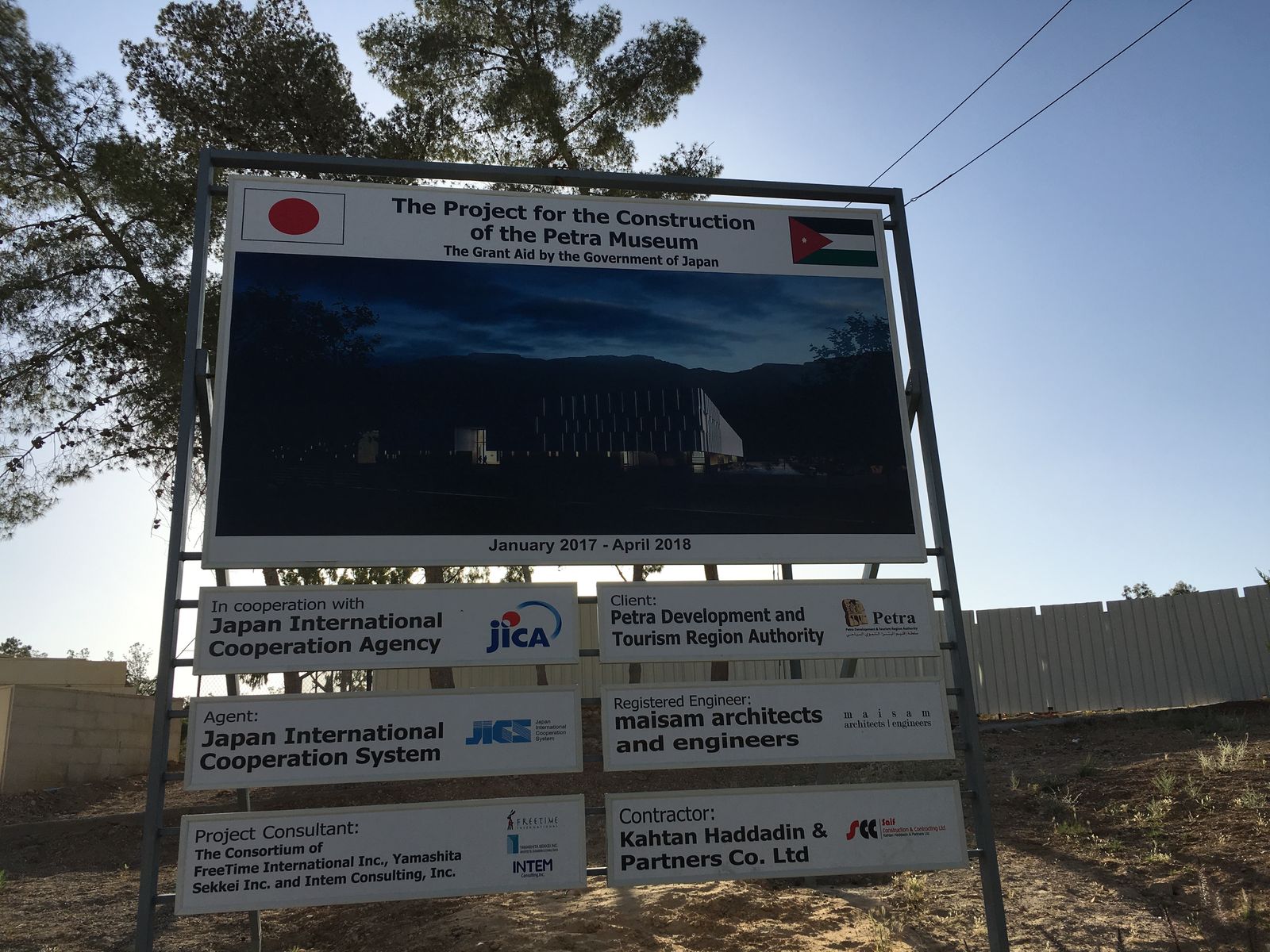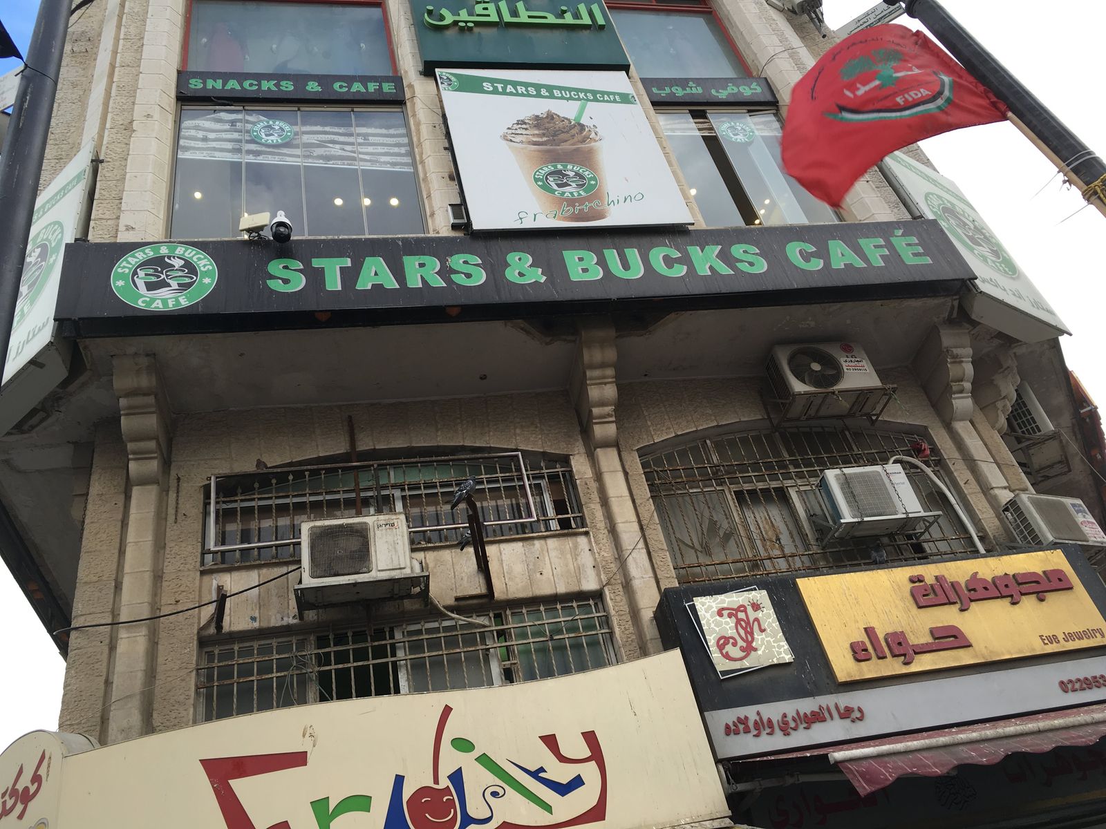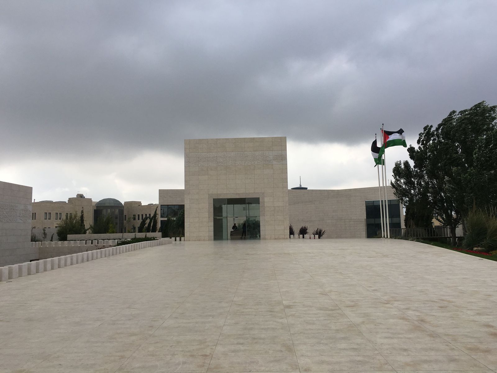 空港を出たところでなびくヨルダン国旗。雰囲気があっていいね。