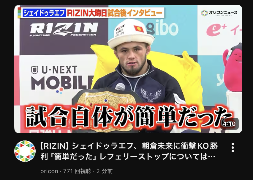 この人、大晦日のRIZINで負けてるところしか見たことないイメージだわ