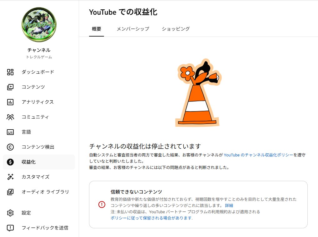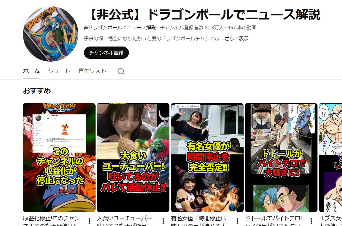 ドラゴンボールニュースみたいな奴が収益化停止したから