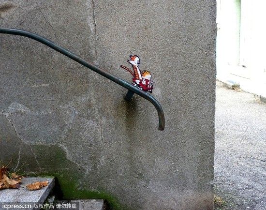 手すりをジェットコースターに見立てた落書きでしょ