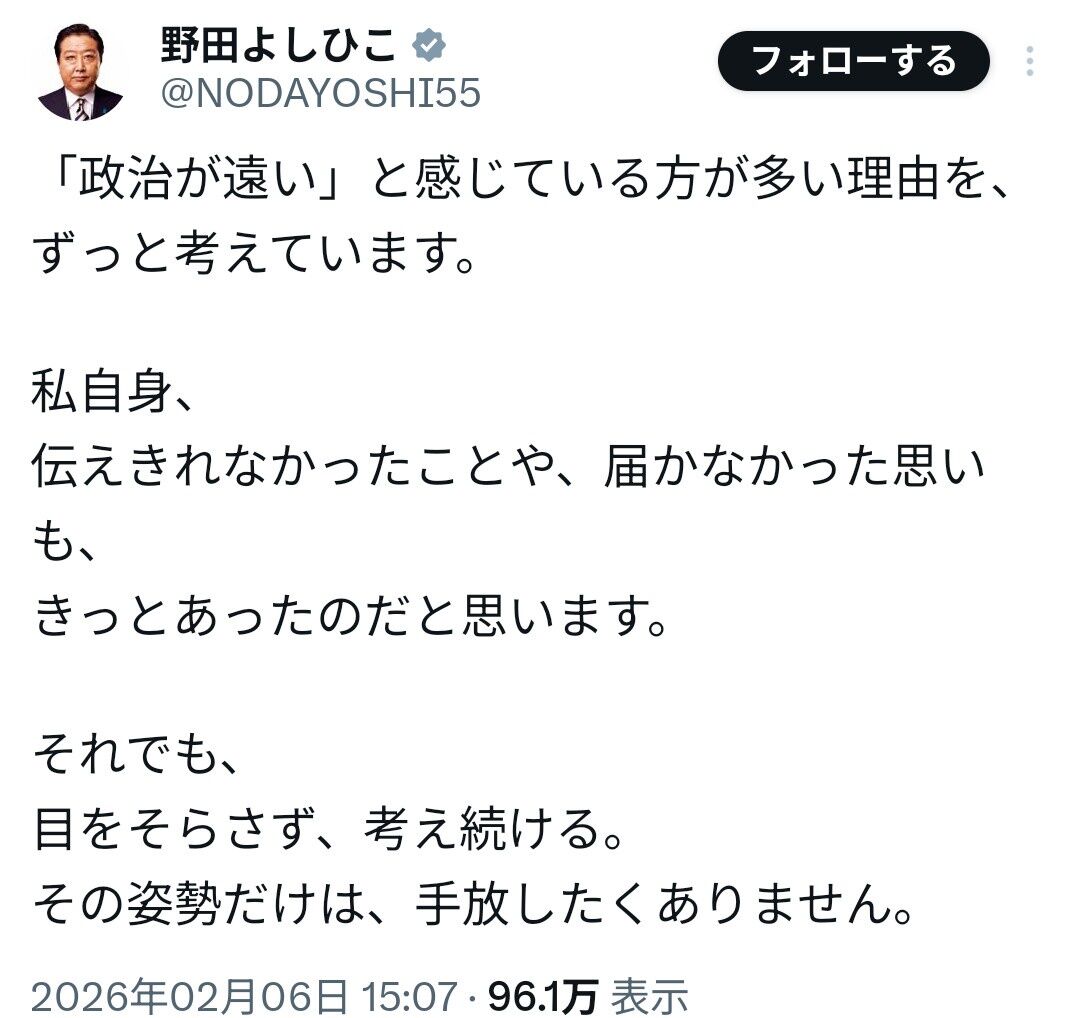 引用元: ・【悲報】元立憲民主党・野田佳彦さん、今になって何かに気づいてしまう……