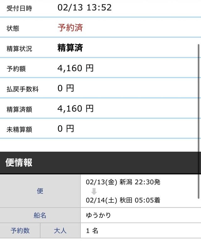 秋田→新潟→ 敦賀のフェリーで帰れたらめっちゃ快適やったけど曜日が合わんかった