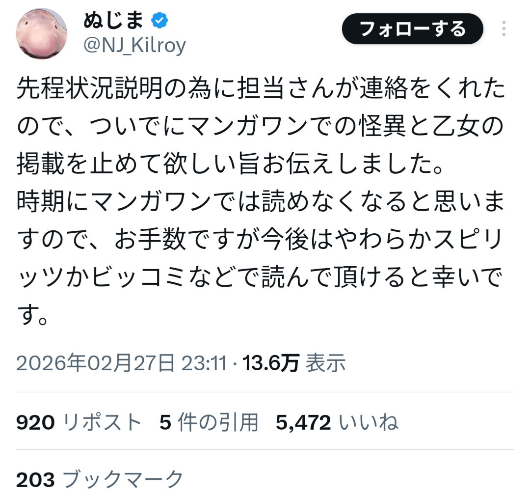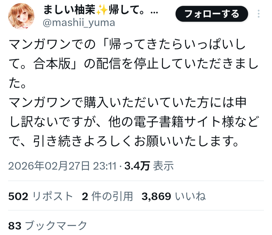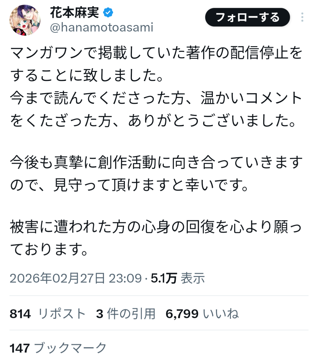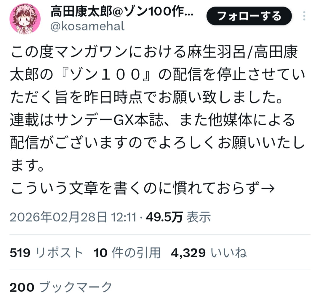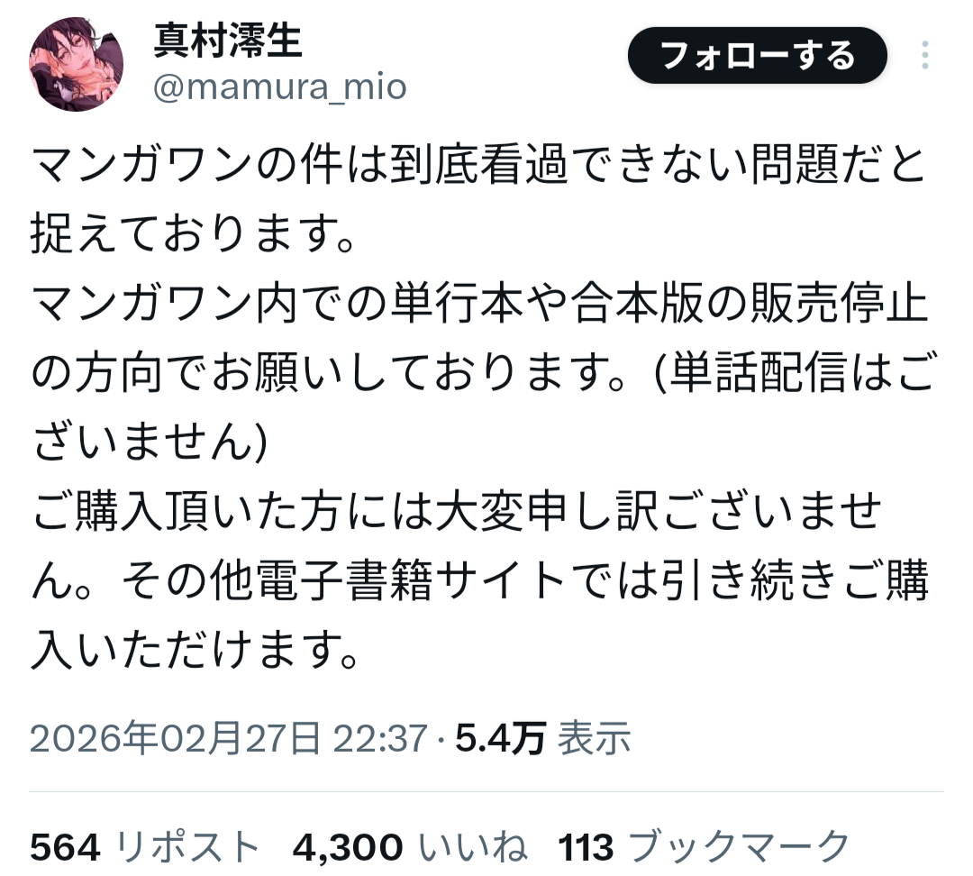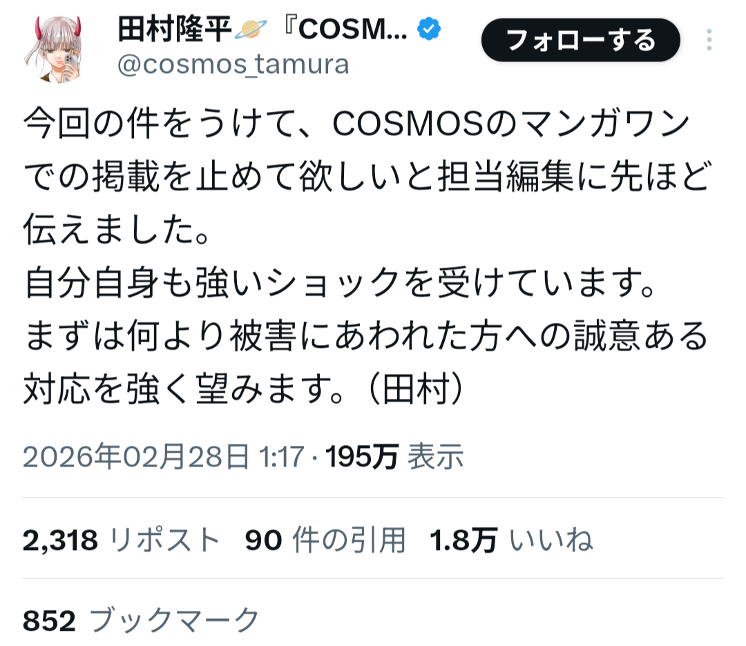 山本氏は過去、女子生徒への性的加害事件により刑事処分を受け、当時の連載作品が終了していた経緯がある。しかしその後、別ペンネームで活動を再開し、マンガワン編集部が新たに作品を起用していたことが明らかになった。