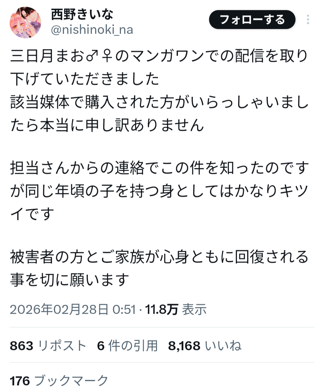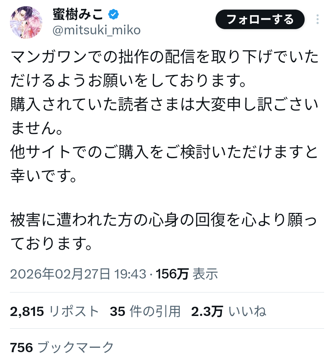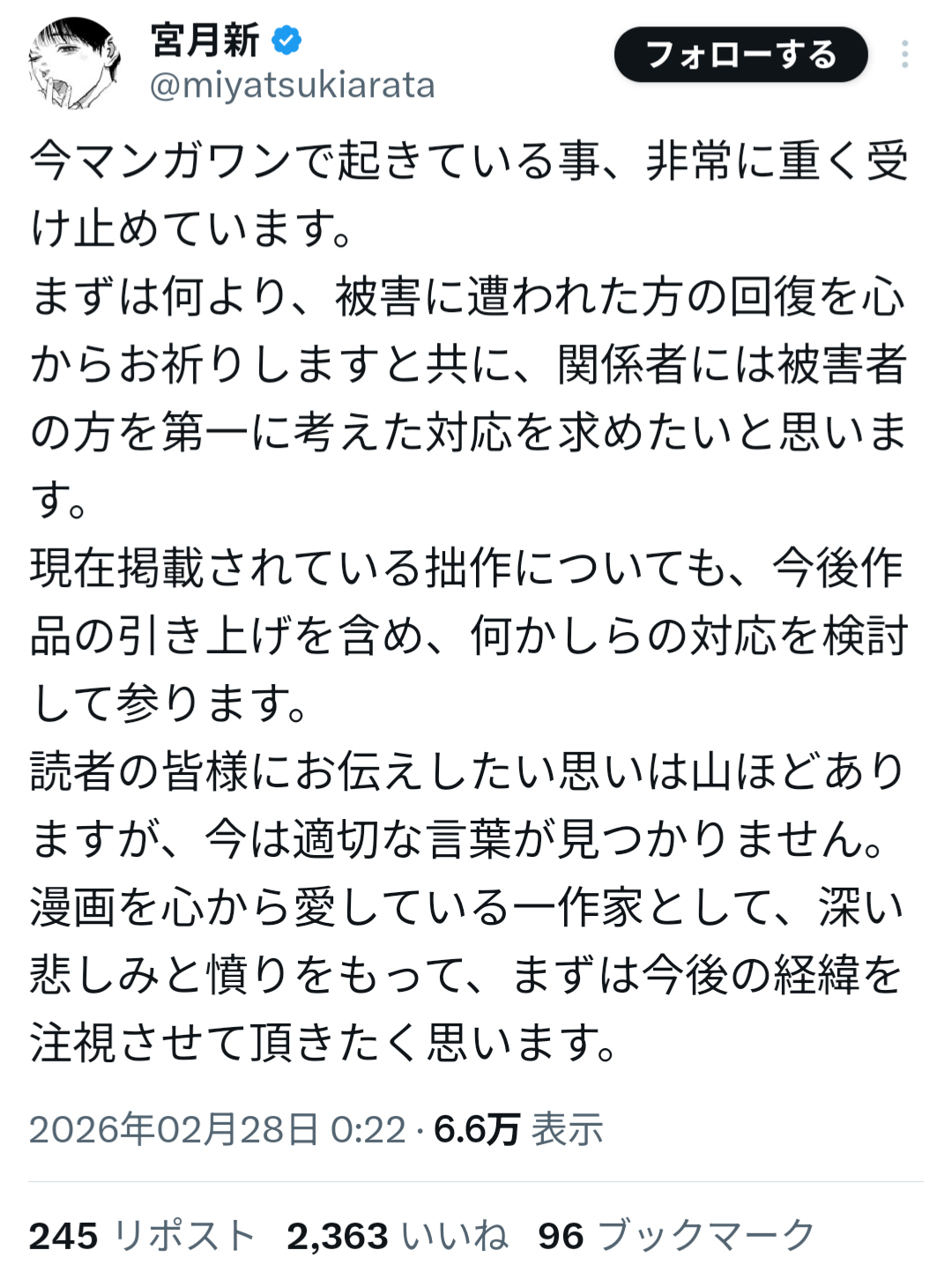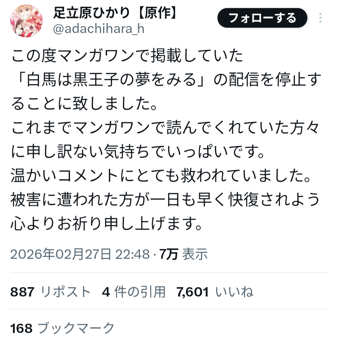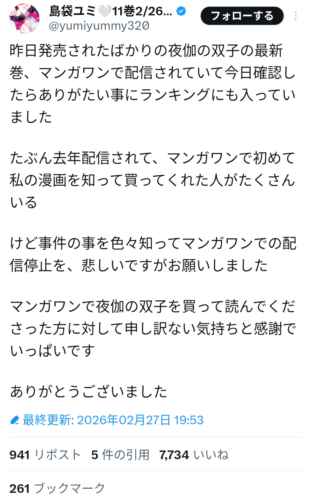 山本氏は過去、女子生徒への性的加害事件により刑事処分を受け、当時の連載作品が終了していた経緯がある。しかしその後、別ペンネームで活動を再開し、マンガワン編集部が新たに作品を起用していたことが明らかになった。