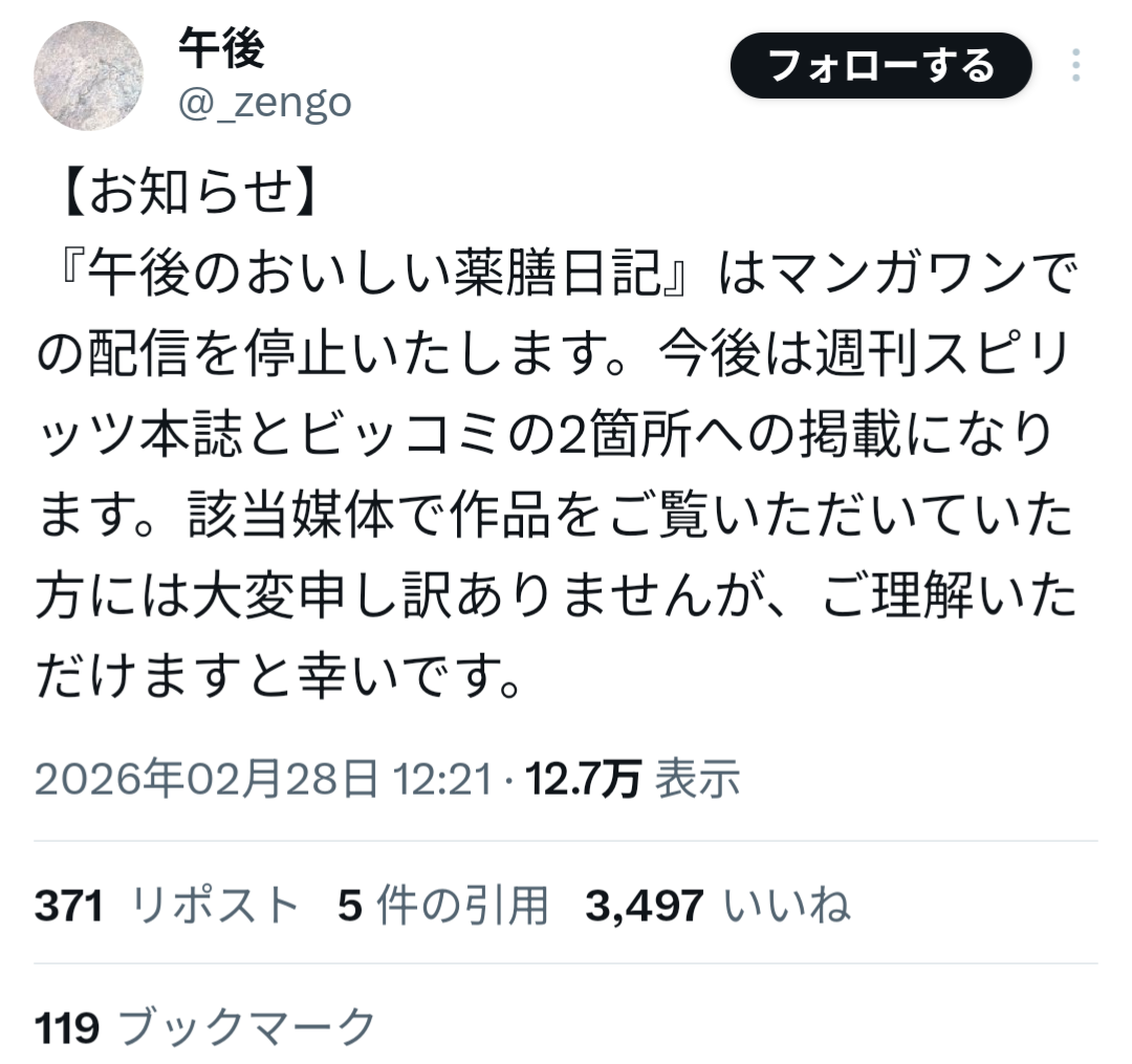今はWebマンガが乱立しすぎてる状況だし、小学館にこだわる必要性がかなり減ってるんだろうな