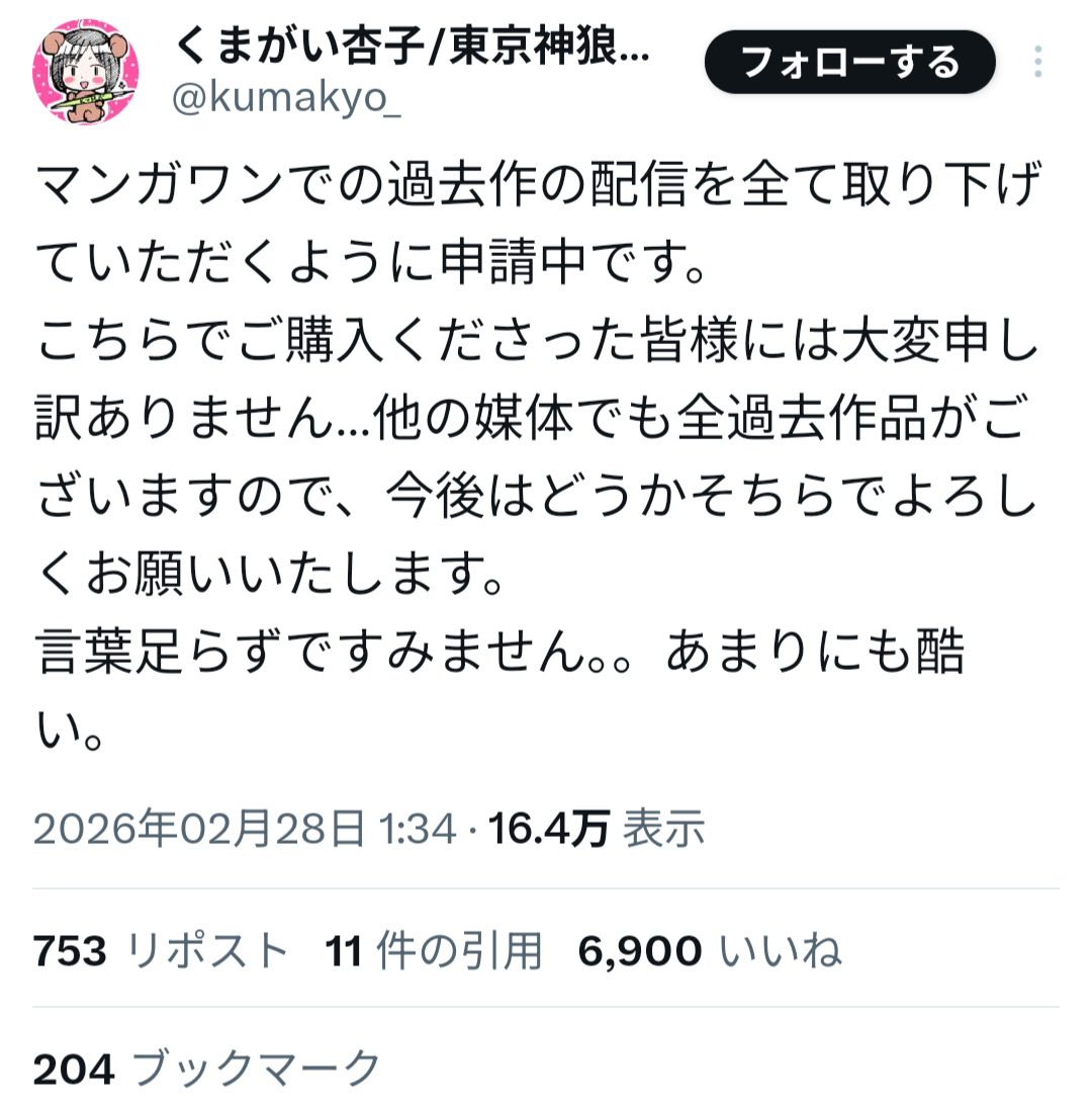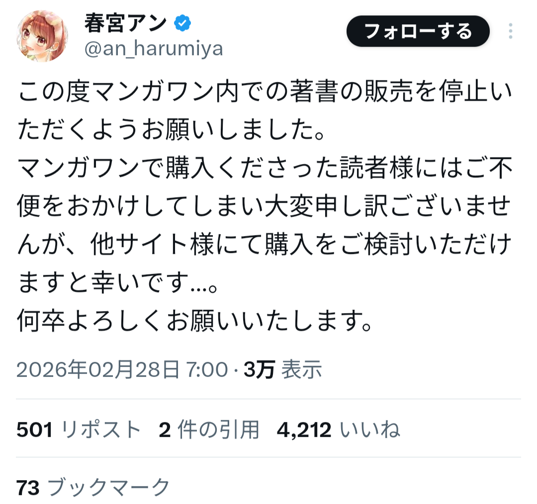 漫画アプリなんて山程あるのにこんな特大不祥事やらかしたらやべー漫画アプリを使う気にもならんし、そもそも漫画家もここから撤退始めてるから読みたい漫画も今後減ってくやろし、ワイは別の漫画アプリに移動するで