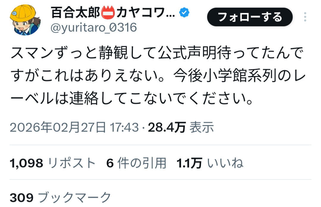 小学館が損失補償してあげないとおかしいよなこれ