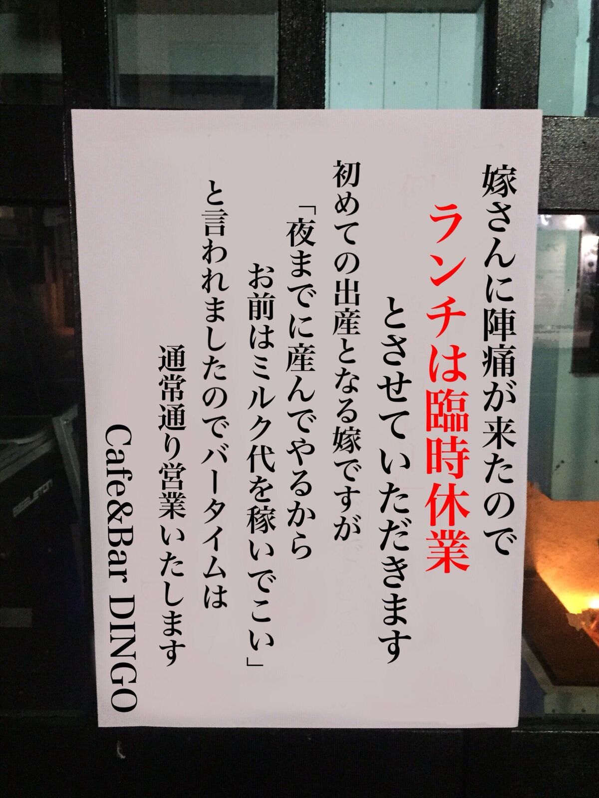 ランチ休業のお店の奥さんカッコいいな!